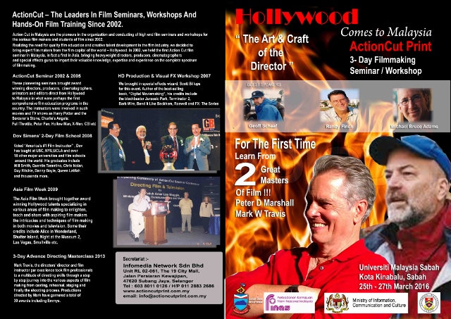 The ActionCut Print 3-Day Film Making Seminar/Workshop will be held from the 25th to the 27th March 2016 at Universiti Malaysia, Sabah, Kota Kinabalu. This seminar promises to be bigger and better with five heavyweight film directors and technocrats, who will impart valuable knowledge on every aspect of film making that has made Hollywood the undisputed film capital of the world.