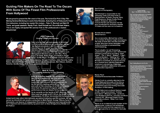 Action/Cut Seminars have been held very successfully in Malaysia since 2002. Hundreds of film professionals in the region have benefitted tremendously from the priceless hands-on knowledge imparted by award winning film directors, cinematographers, script writers and special effects experts from Hollywood.Conducted by Peter D. Marshall, an accomplished and award winning film director and respected film training guru with more than 40 years’ experience in the field, the seminar will take participants into the finer points and craftsmanship of producing and directing outstanding films for the international market. As a First Assistant Director, Peter has worked on over 12 features (including “Dawn of the Dead”, “The Butterfly Effect”, “Happy Gilmore”, “The Fly II”); 16 Television Movies; 8 Television Series; and over 20 Commercials.