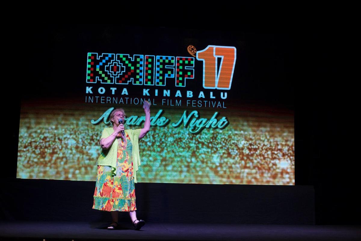 - Jude Day,KKIFF Festival Director, receiving the Golden Kinabalu Award – Narrative on behalf of Kubendera M.S. Mahadevan (Malaysia) for SI TOMMY.